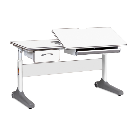 Удобная красивая парта, регулируется высота, есть боковой ящик, выкатной ящик, место, где ребенок пишет можно отрегулировать по наклону.Минусы:
