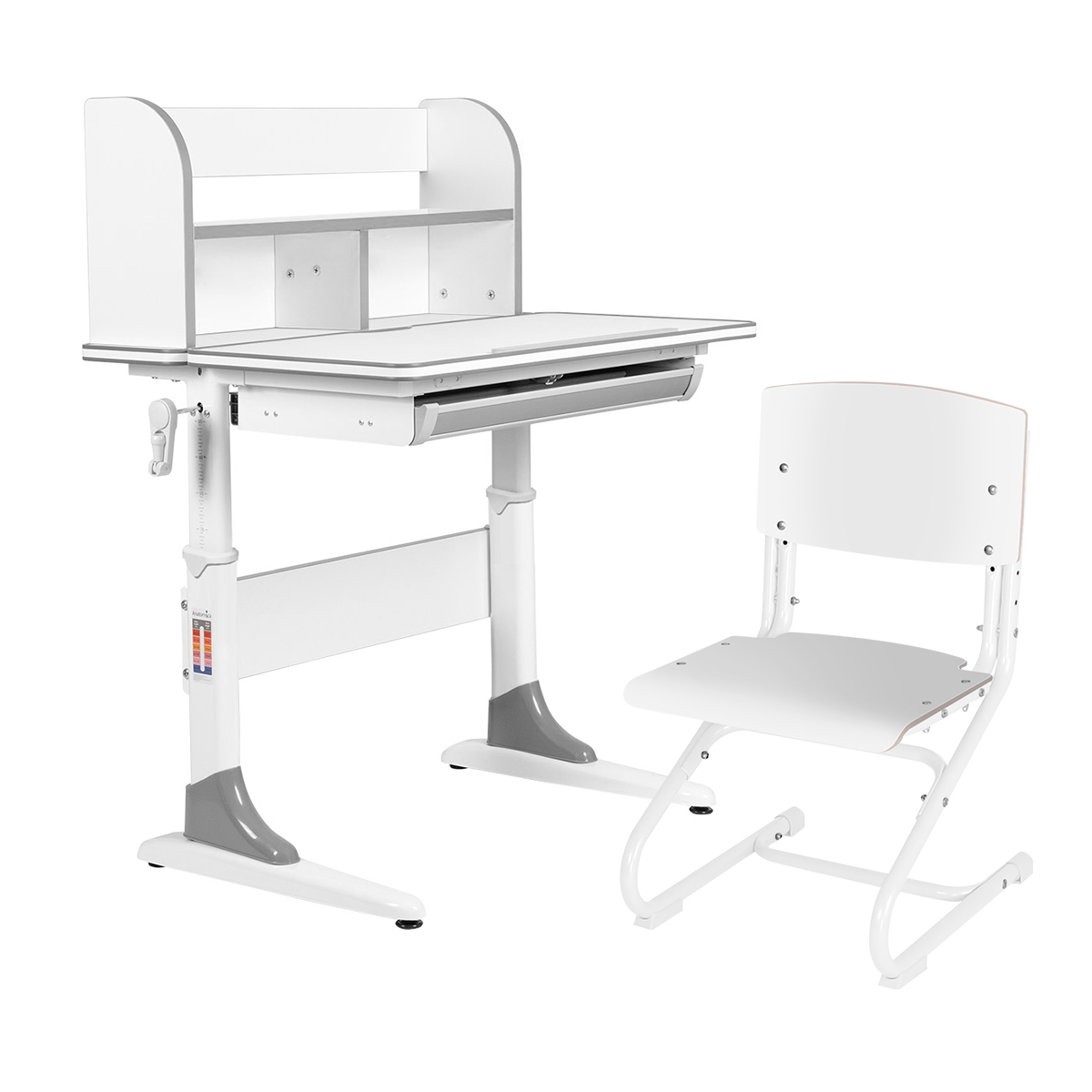 С помощью специальной ручки, ребёнок сам сможет плавно и легко отрегулировать высоту парты, чтобы работать как стоя, так и сидя.